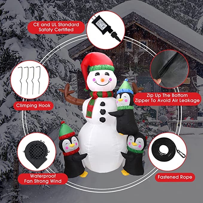 The Christmas inflatables decoration with build-in LED Lights are very suitable for Christmas blow up yard decorations and is very suitable for watching at night, be noticed by neighbors, and leave a deep impression.