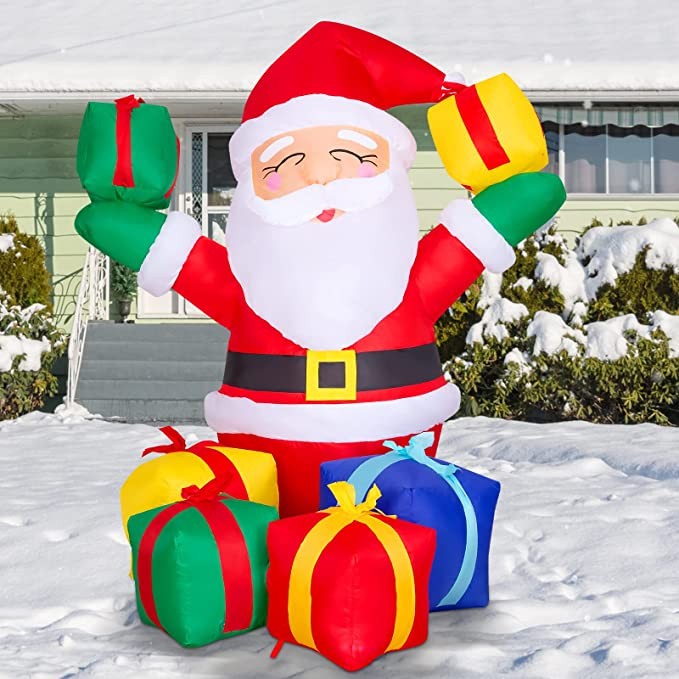 GOOSH 6.1 FT Height Christmas Inflatables Outdoor Smiling Santa Claus with Present Boxes, Blow Up Yard Decoration Clearance with LED Lights Built-in for Holiday/Christmas/Party/Yard/Garden