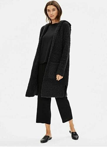 A loose hood and extended length add a comfortable appeal to this good-feel cardi knit, crafted from recycled nylon and thermal fleece. - 37 1/2" (~93.8 cm) Length (L/XL) - Front Patch Pocket - 53% Wool, 24% Recycled Nylon, 23% Nylon - Dry Clean or Hand Wash, Lay Flat - Imported