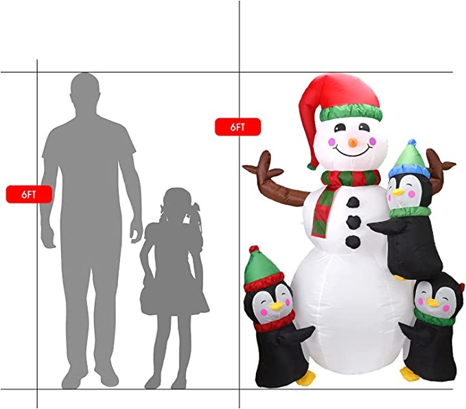 The Christmas inflatables decoration with build-in LED Lights are very suitable for Christmas blow up yard decorations and is very suitable for watching at night, be noticed by neighbors, and leave a deep impression.