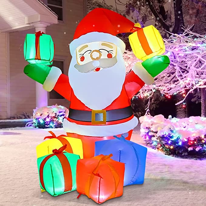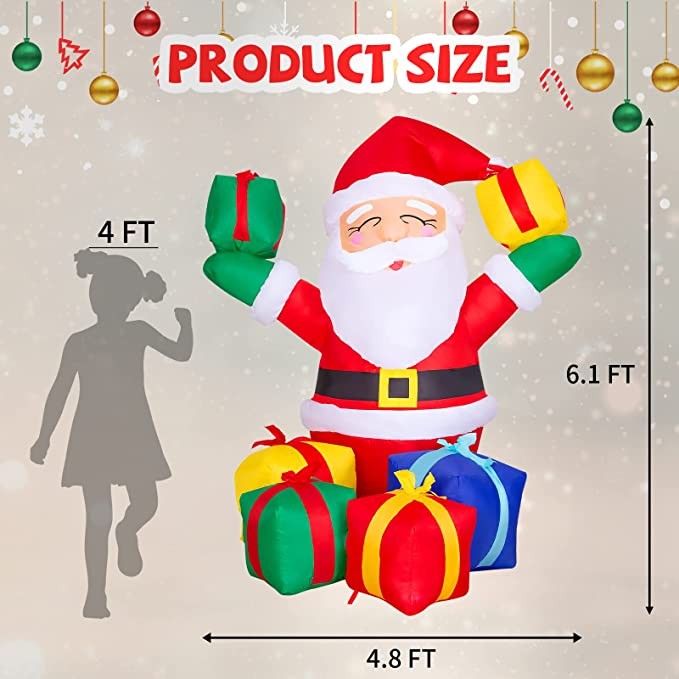 GOOSH 6.1 FT Height Christmas Inflatables Outdoor Smiling Santa Claus with Present Boxes, Blow Up Yard Decoration Clearance with LED Lights Built-in for Holiday/Christmas/Party/Yard/Garden