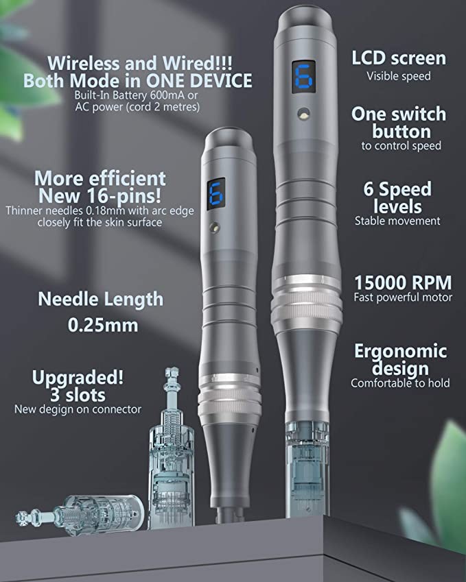 New Body Life Dr. Pen Ultima M8 Professional Cordless Micro-Needle Skin Pen - Cordless Derma Automatic Pen - Skin Care Tool Kit for Face & Body - 5 Cartridges (2 16-Needle + 3 36-Needle)