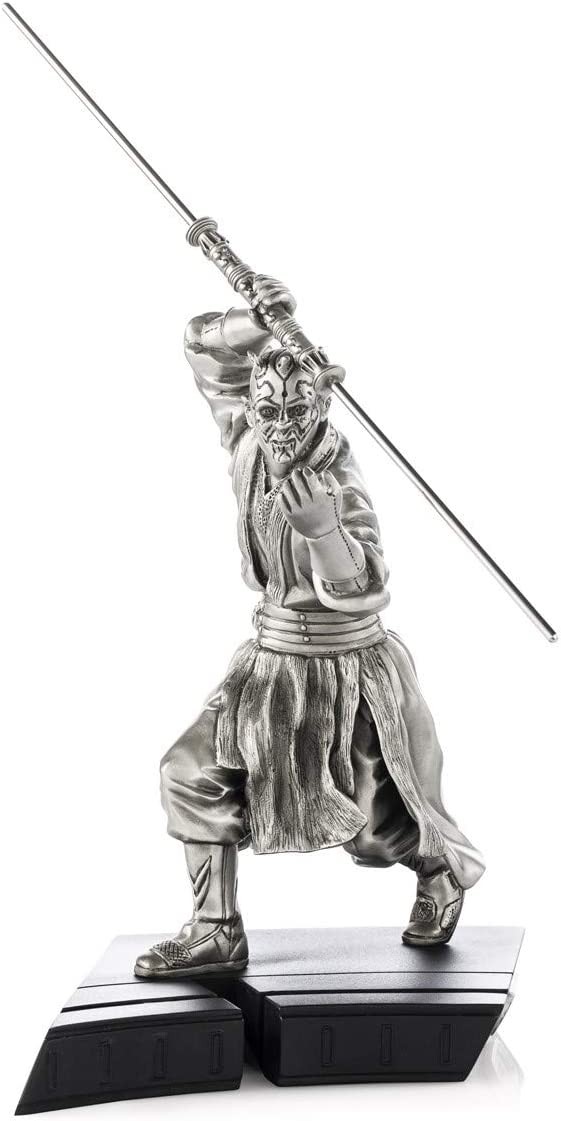 Our turquoise sculpture is in all the deadly grace of Maul, breaking his double-bladed lightsaber when he gracefully attracted the Jedi and his Patawan.