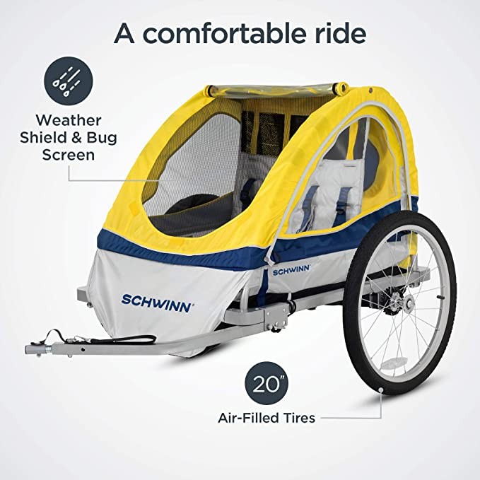 Schwinn Echo, and Trailblazer Child Bike Trailer, Single and Double Baby Carrier, Canopy, 16-20-inch Wheels