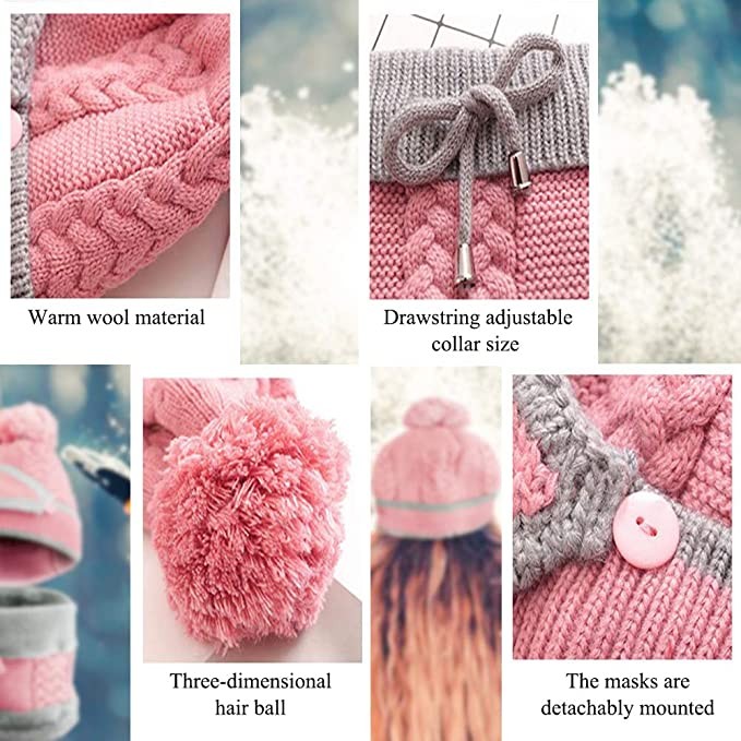 3 IN 1 ACCESSORIES - 1 set of 3 includes a knitted winter hat with fleece lining, adjustable scarf and a detachable face shield, this combo will keep your head, ears and neck warm.